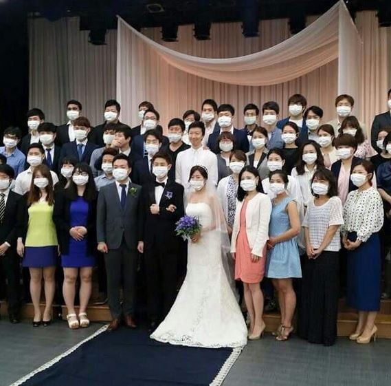 〔即時新聞/綜合報導〕南韓「中東呼吸症候群冠狀病毒感染症」(MERS-CoV)疫情蔓延,許多民眾戴口罩出門,近期網路上流傳一張照片,南韓一對新人日前舉辦婚禮,與親友們合影時都戴著口罩,有網友就說,「MERS也不能阻止婚禮進行!」