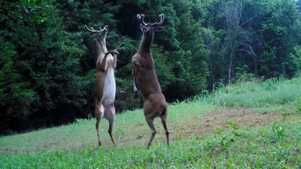 拍攝到這個畫面的保育員表示,這兩隻鹿大概是為了地盤而起爭執,而也有專家說明,這兩隻鹿會站起來搏鬥,是為了保護還沒長成鹿角的鹿茸,等鹿茸硬化成為鹿角後,他們的戰鬥模式,就會轉變成一般人印象中的用角搏鬥了。