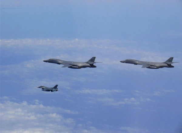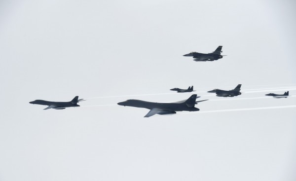 據綜合媒體報導,兩架B1槍騎兵(Lancer)戰略轟炸機自關島安德森空軍基地(Andersen Air Force Base)出發,與南韓兩架F-15K戰鬥機會合後飛往靠近南北韓邊境的江原道射擊場進行演習,這場演習是在模擬兩架美國轟炸機摧毀敵方彈道飛彈砲台,南韓戰鬥機則對地下敵方指揮所發動精準攻擊。南韓司令官表示:「美韓兩軍不論敵人在何時、何地、何種手段挑釁,都能直接應對並殲滅。」