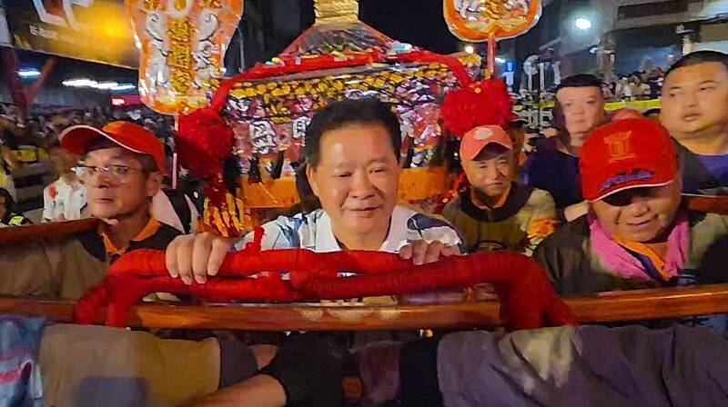 大甲鎮瀾宮正、副董事長顏清標與鄭銘坤親自負責彰化市民生地下道的扶轎。(記者劉曉欣攝)