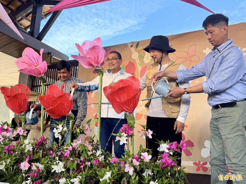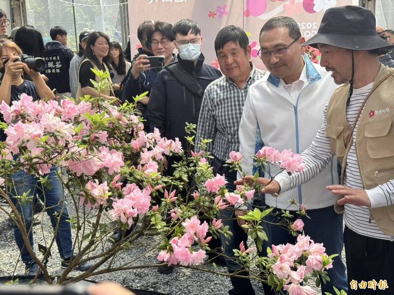 新北市長侯友宜(左2)出席杜鵑花展。(記者羅國嘉攝)