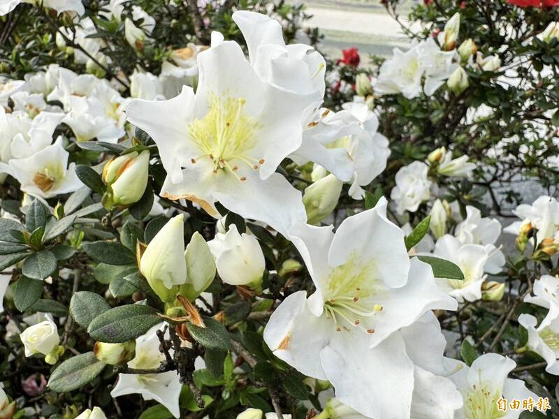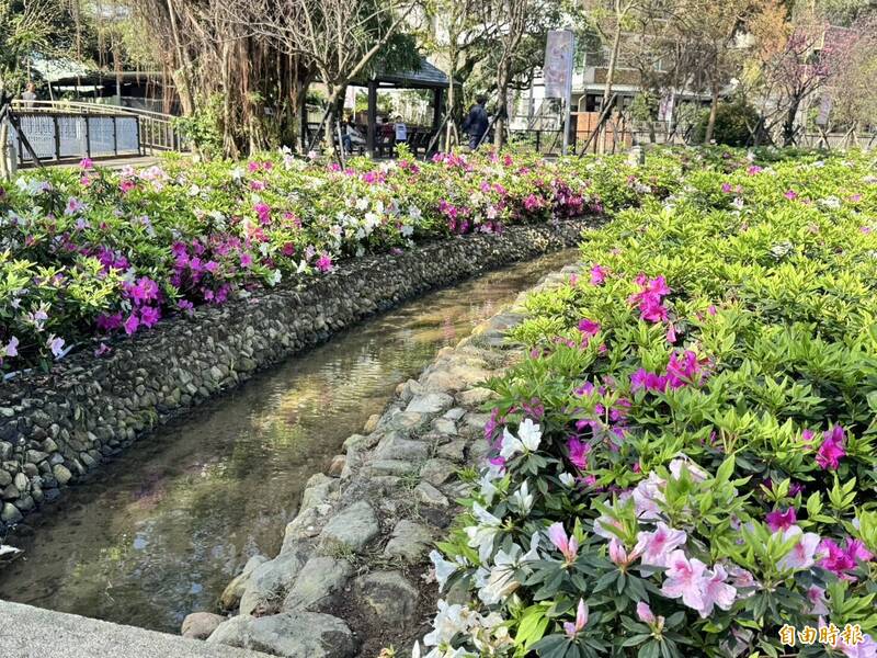 新北市金山區中山溫泉公園周邊滿滿杜鵑花。(記者羅國嘉攝)