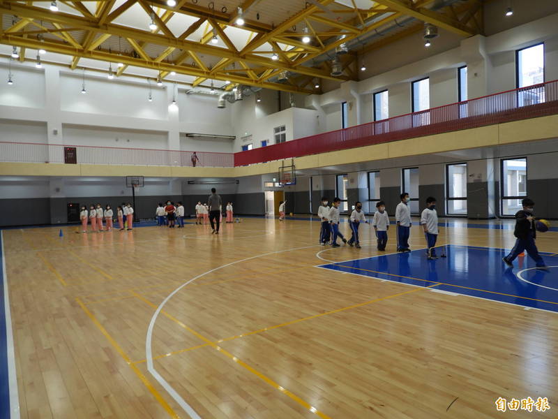 新北市板橋區新埔國小第2期校舍整建工程興建多功能球場,學生可在室內運動。(記者賴筱桐攝)