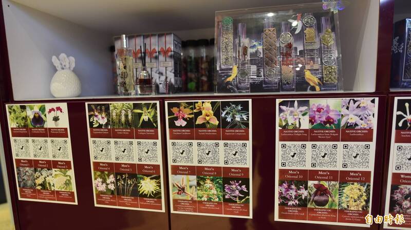 新加坡聖淘沙內開設「Sentopia」香水店,店內所有香水都有新加坡國花「蘭花」(胡姬花)的成分,展現當地特色。(記者吳柏軒攝)