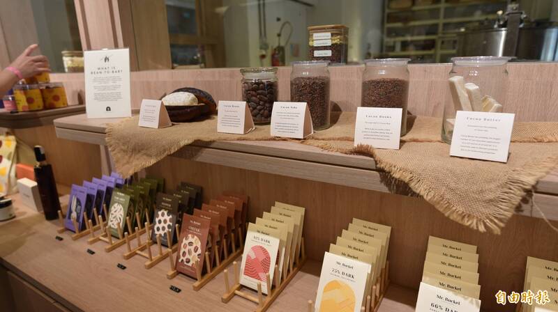 新加坡巧克力工廠「Mr. bucket」製造的巧克力,原料全部選自亞洲農夫種植的可可豆,要幫助其生計,推廣亞洲品牌。(記者吳柏軒攝)