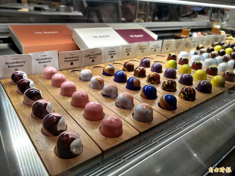 新加坡巧克力工廠「Mr. bucket」製造的巧克力,原料全部選自亞洲農夫種植的可可豆,要幫助其生計,推廣亞洲品牌,也推出各種多元口味的產品。(記者吳柏軒攝)