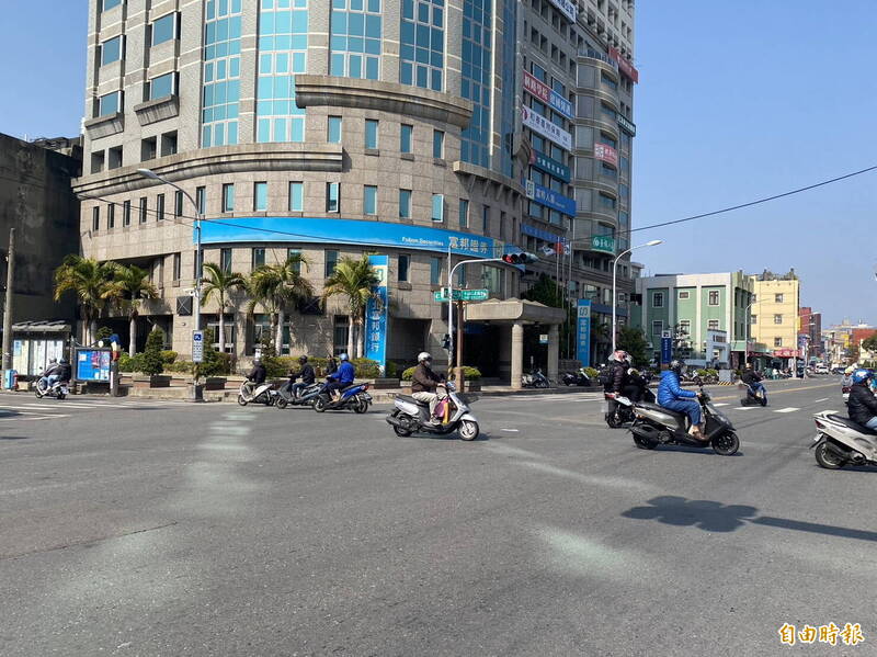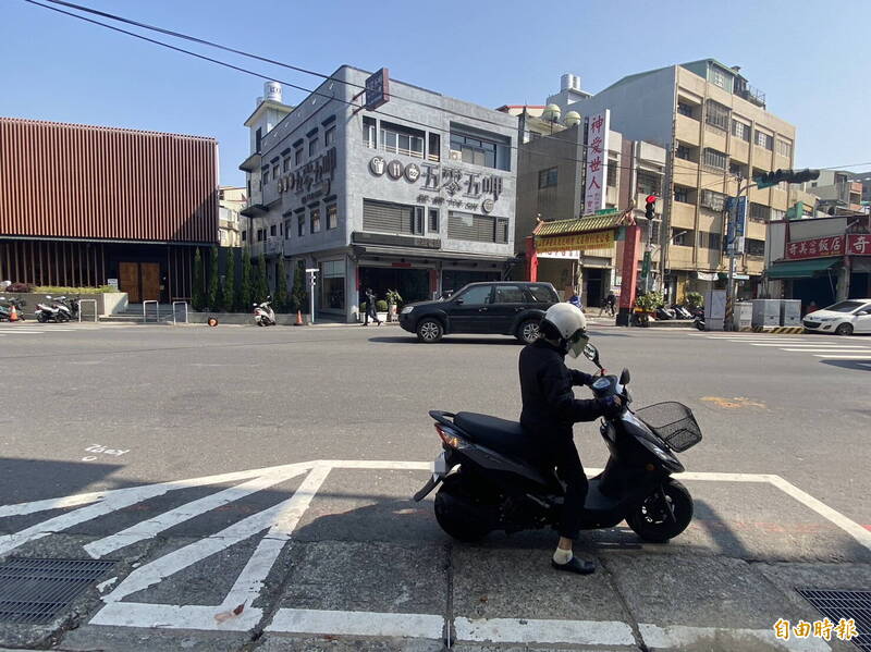 多數騎士習慣從待轉區停等綠燈再通行。(記者張聰秋攝)