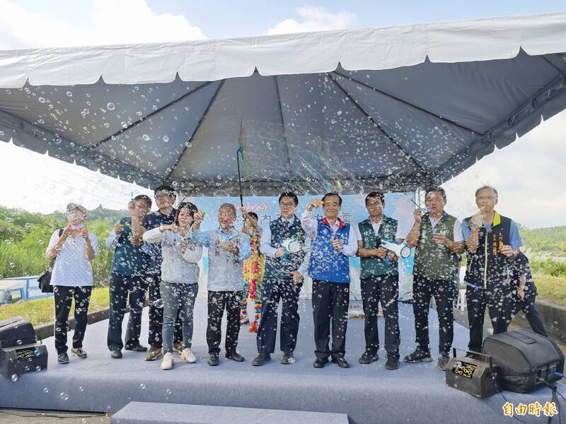 市長黃偉哲帶領各界貴賓一起為大內區公所主辦的「9月雪」活動揭幕。(記者吳俊鋒攝)