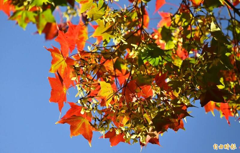 武陵農場青楓逐漸轉為紅葉。(記者張軒哲攝)