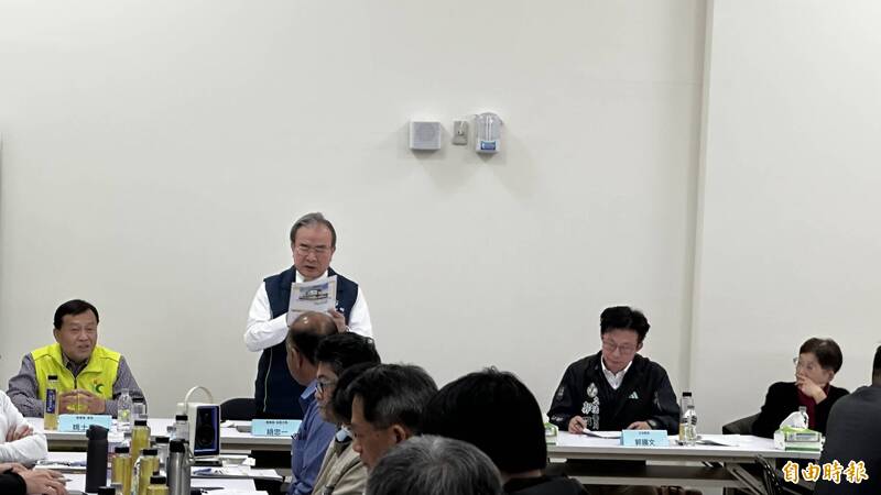 農業部政務次長胡忠一(立者)與農糧署長姚士源(左1)等人到玉井農產加工及冷鏈物流中心與市府、廠商、農會及農民代表座談。(記者劉婉君攝)