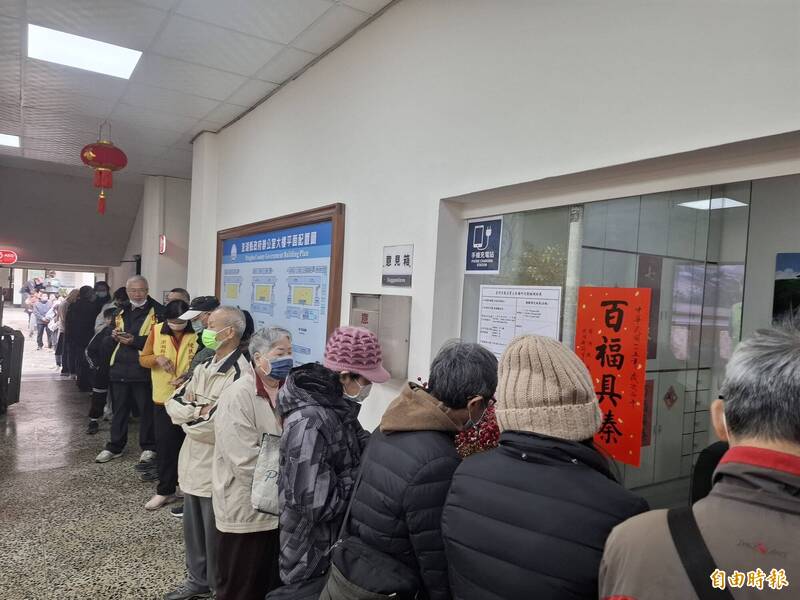 澎湖縣政府警衛室七龍珠節慶紅包袋,民眾大排長龍領取。(記者劉禹慶攝)