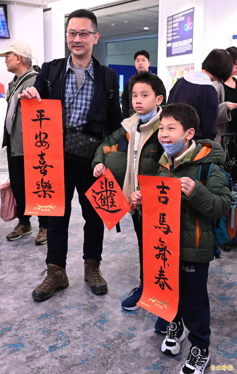 〔記者朱沛雄/桃園機場報導〕農曆春節將至,桃園機場今天舉行2場新春揮毫活動,邀請書法老師揮毫寫春聯贈送給旅客,吸引不少民眾排隊索取,為桃園機場增添濃厚年味。