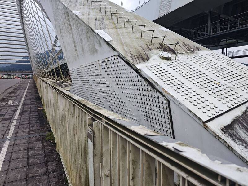 三角湧大橋的護欄皆已脫漆。(吳昇翰辦公室提供)
