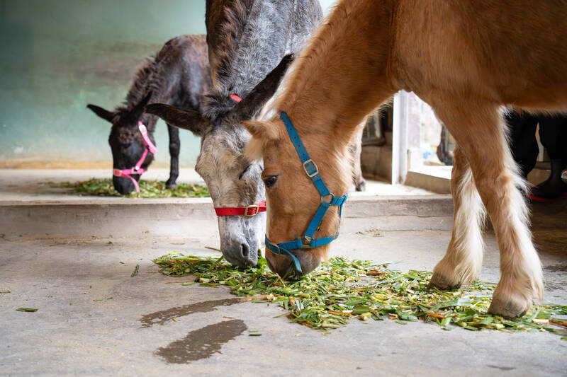 不過馬兒當然不管是什麼字,只要是好吃的牧草全都照單全收。(台北動物園提供)