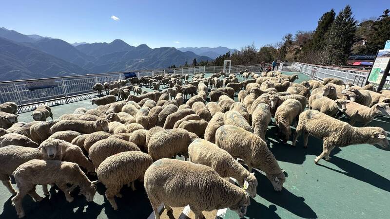 清境農場「奔羊節」登場,今年出動115對、230隻綿羊與遊客互動。(清境農場提供)