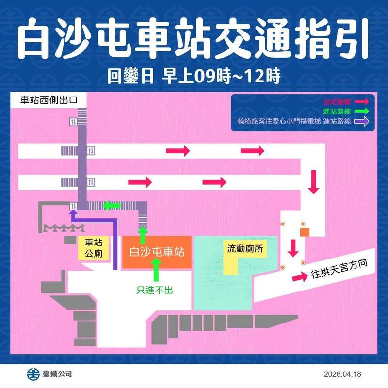 粉紅超過4/20回宮 台鐵白沙屯車站進出動線變動看這裡