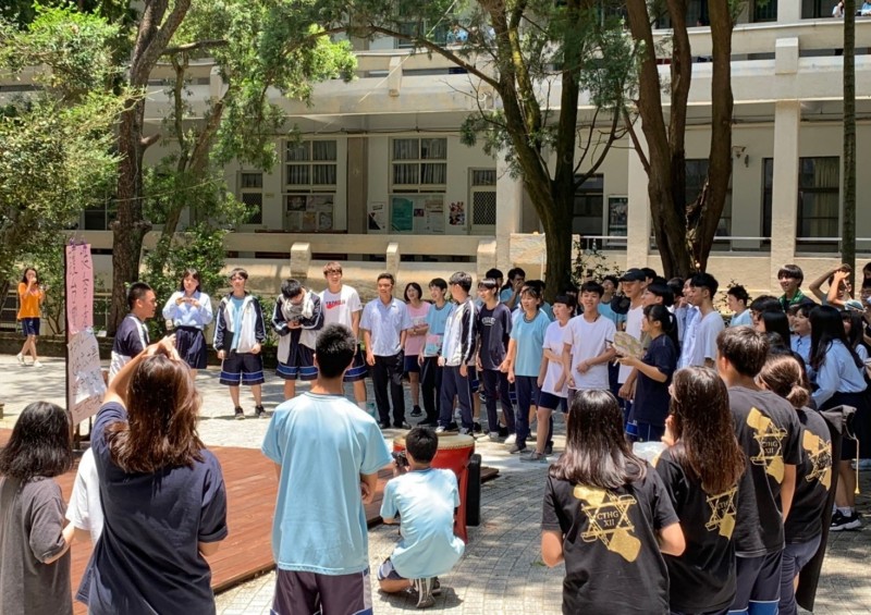 國立竹東高中學生今天中午在學校文協廣場舉辦聲援香港「反送中」活動。(現場學生提供)