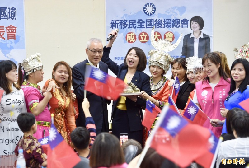 國民黨主席吳敦義今出席總統參選人韓國瑜新移民政見發表會暨新移民全國後援總會成立大會,由國民黨立委林麗蟬、國政顧問團總召張善政、社福組組長馮燕發表韓國瑜新移民政策。