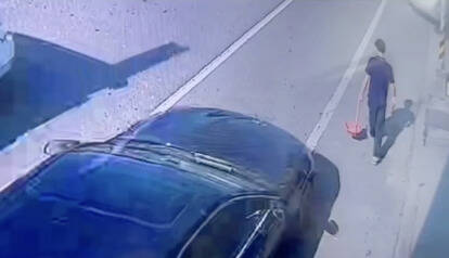 生死一瞬間!BMW高速擦身掃地男 畚斗炸裂「擋煞」救命