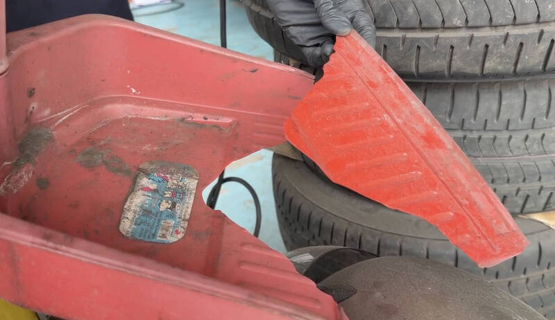 黃男說,當下腦袋一片空白,回神後才發現自己毫髮無傷。慶幸還好有畚斗擋煞,不然命就沒了。(民眾提供)