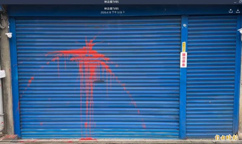 楊梅區新榮路1處民宅大門,被潑紅漆。(記者周敏鴻攝)