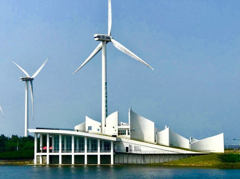 「白色海豚屋」純美建物,潔白風機為伴,已是打卡熱點。(彰化縣府提供)