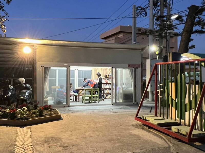 文祥國小將學校車庫改裝成玻璃小屋,室內設置桌椅、書籍,讓學生放學時待在室內,讓家長「很放心」。(文祥國小提供)