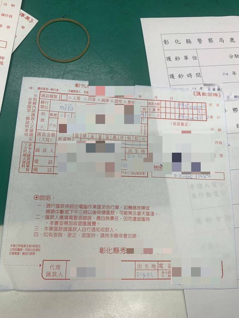 鹿港警分局表示,因為接獲有民眾提領195現金需要護鈔服務,馬鳴派出所的所長洪漢鵬、警員楊宗晏立到場才發現,提領的吳男有事把錢交給22歲兒子後就先行離開,詢問其用途,吳男兒子都回答不出來。