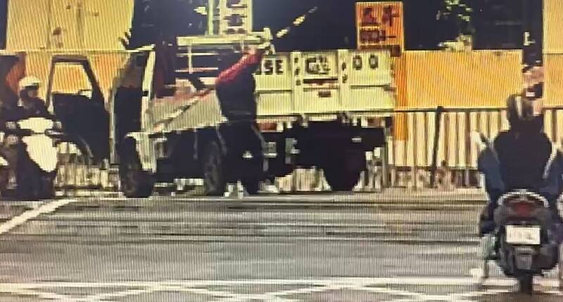 司機下車把遮斷桿撿起放在車斗就自行離去。(民眾提供)