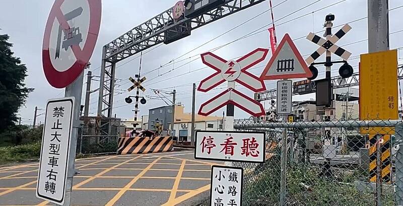 彰化市泰和路平交道前有多面告示牌,提醒用路人要遵守規定。(民眾提供)