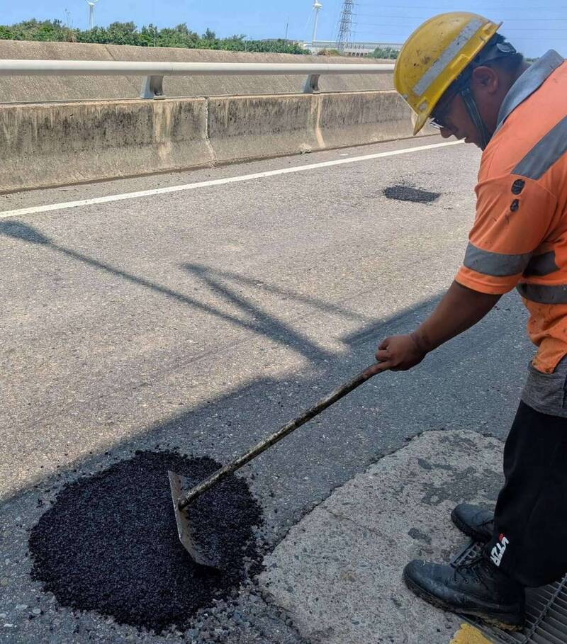 彰化縣省道共查出有199處坑洞,公路局彰化工務段全面修補。(圖由彰化工務段提供)