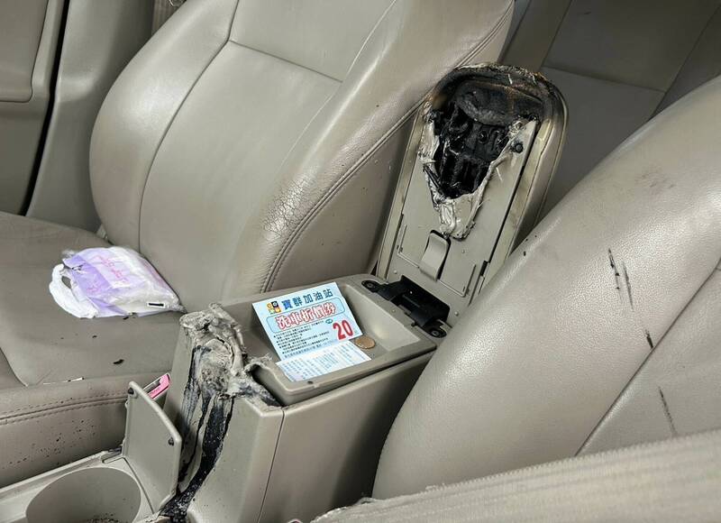 車內應避免放置危險物品,以免引發火燒車。(圖由消防局提供)