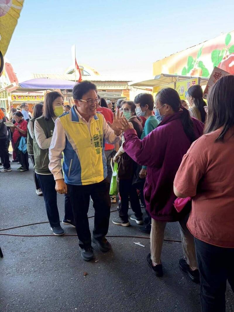 前彰化市長邱建富到彰化果菜市場拜票。(取自邱建富臉書)