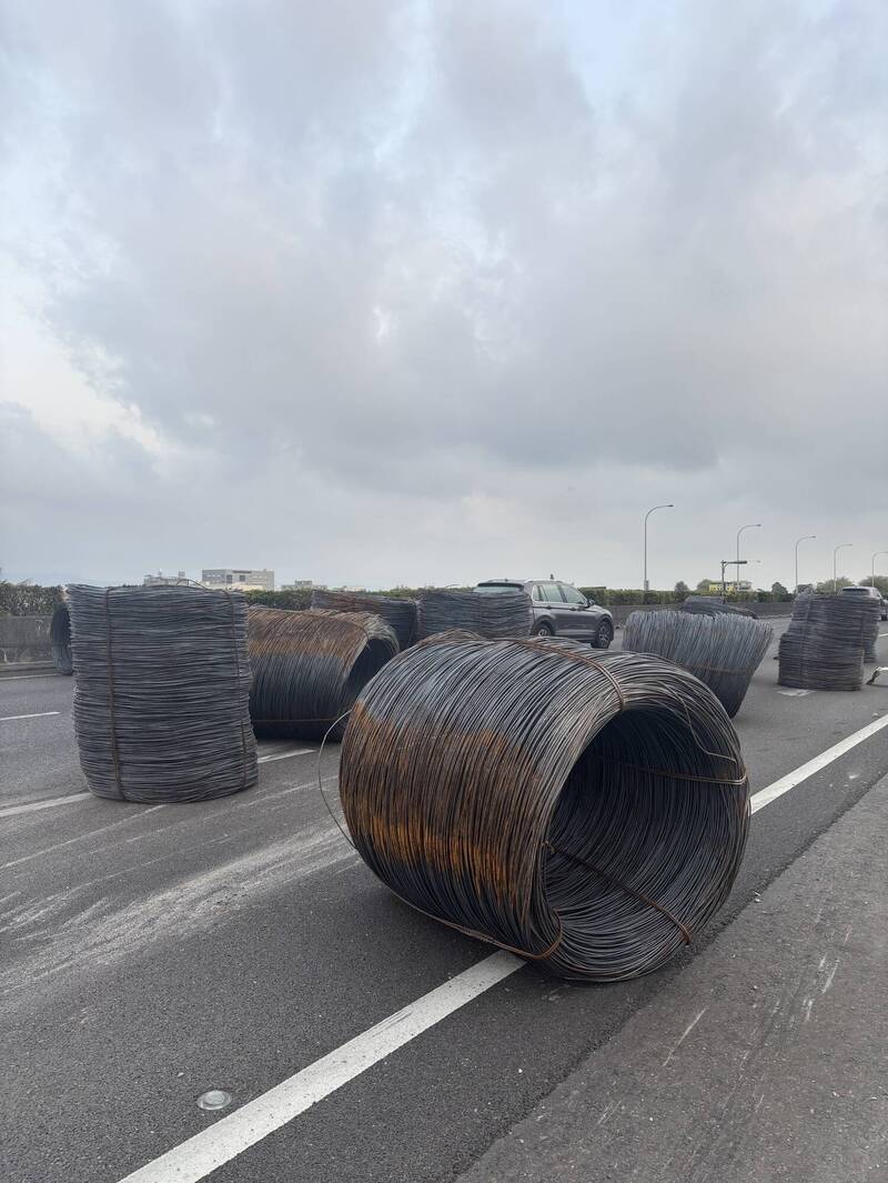 有直擊民眾將行車影片上傳社群平台貼文,「我在搖滾區,人生跑馬燈走一回了!」引發熱議。畫面顯示,該車原行駛外側車道,途中突然偏移至內側車道,又急切回外側,隨即失控撞上護欄,載運的鐵線圈瞬間掉落、四散滾動,占據多個車道,後方車輛紛紛急煞閃避,險象環生,所幸未發生連環追撞。