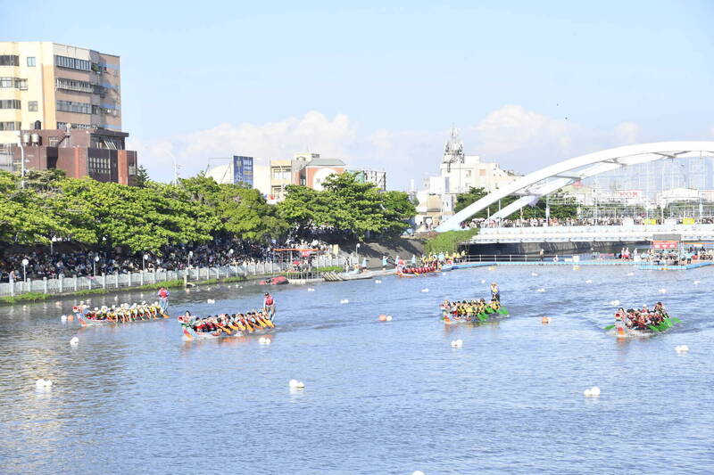 彰化鹿港國際龍舟賽每年在福鹿溪登場,國內外隊伍同場競速,是鹿港慶端陽的重頭戲之一。(圖由縣府提供)