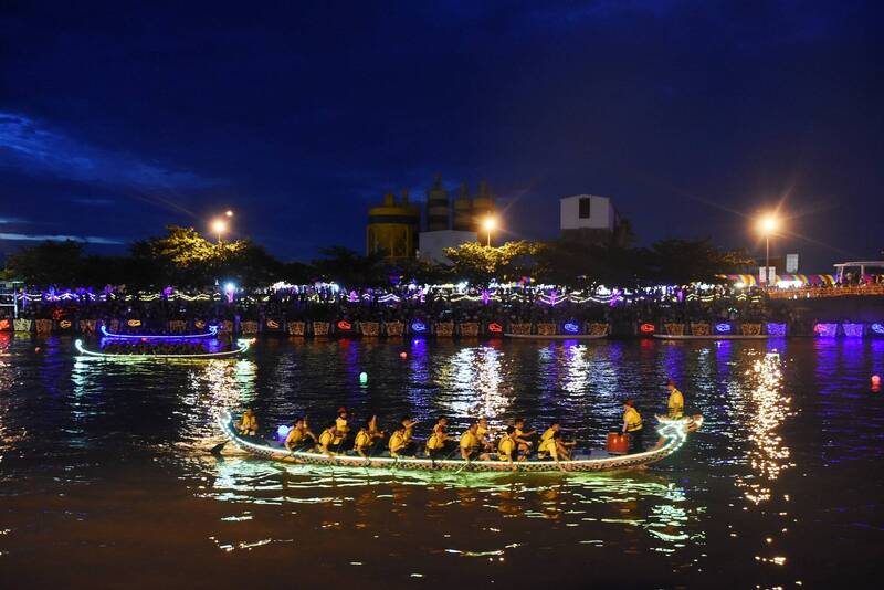 鹿港夜間龍舟賽結合燈光效果,划龍舟、賞夜景一次滿足,年年人潮爆滿。(圖由縣府提供)