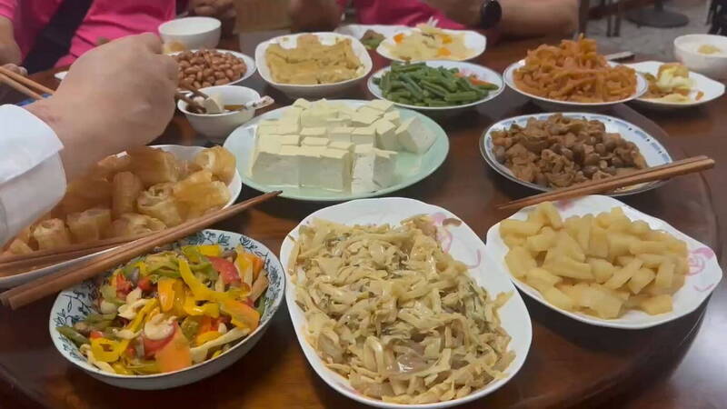 大甲媽遶境今天第2天,彰化人熱情迎鑾轎,準備豐盛美食接待香客。(民眾提供)