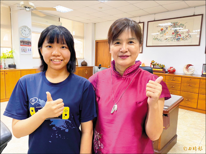 彰女考生林芫宣考上中山醫學大學醫學系(左),校長陳香妘(右)誇讚讀書態度值得學妹們學習效尤。(記者張聰秋攝)