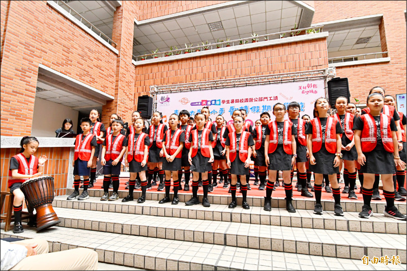 邁入第7年的彰化市平和國小毛毛蟲合唱團,不只是比賽常勝軍,也經常獲邀公益演出,用美妙的聲音打動人心。(記者張聰秋攝)