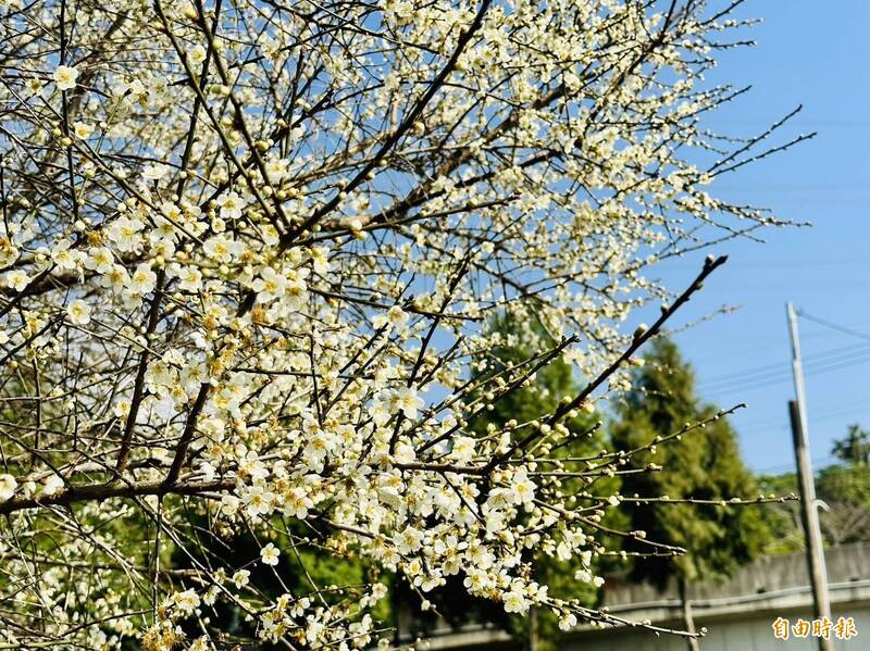 春節連假期間,遊客湧入大阿里山區各旅遊及賞花景點,到處是人潮與車潮,平地與淺山區賞花景點除今年大爆開最熱門的梅山公園外,還有另類的單樹花王,有別於數大就是美,這些單棵花況艷冠群雌,番路半天岩梅花王與大林明華濕地風鈴木,前者樹型有王者之風,滿樹白色梅花與藍天白雲相映成趣,後者一枝獨秀的水中倒影,美不勝收。