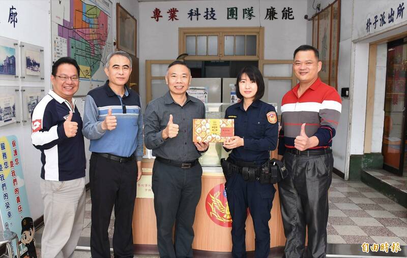 朴子警分局長吳俊德送給女警禮盒,祝賀婦女節快樂。(朴子分局提供)