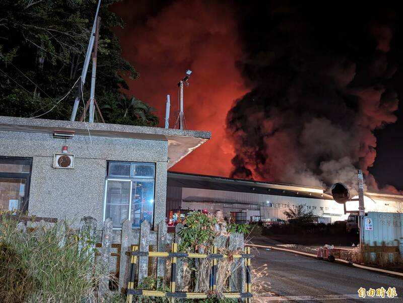該起火警昨(28)日深夜11點多傳出火警,火舌濃煙竄出,照亮夜空。消防局派遣三和、中埔、梅山、祥和、竹崎、雙福、第三大隊人車搶救,消防員到場發現,鐵皮廠房因出租給塑膠加工業者,放有塑膠、重機械等材料,廠房坍塌、全面燃燒。