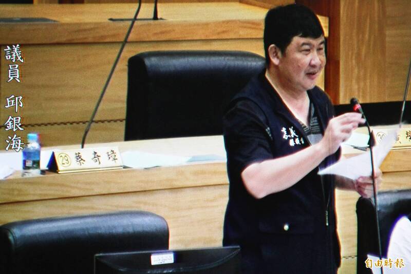 國民黨籍前嘉義縣議員邱銀海被控詐領助理費、非法掩埋事業廢棄物及非法寄藏子彈,嘉義地方法院一審判應執行6年6個月徒刑。由於邱銀海任內爭議很多,包括在縣政總質詢時向備詢的縣警局長廖宗山兩度指稱「警察好像是組織流氓」,引發軒然大波。另非法掩埋混合廢棄物被查獲時,公然向執行公務的環保人員施暴。這次被判處6年半徒刑,地方人士多表示不意外。