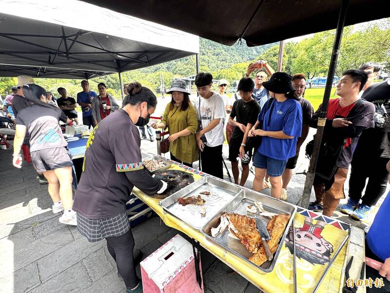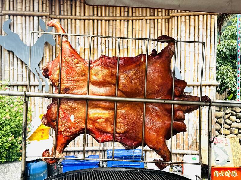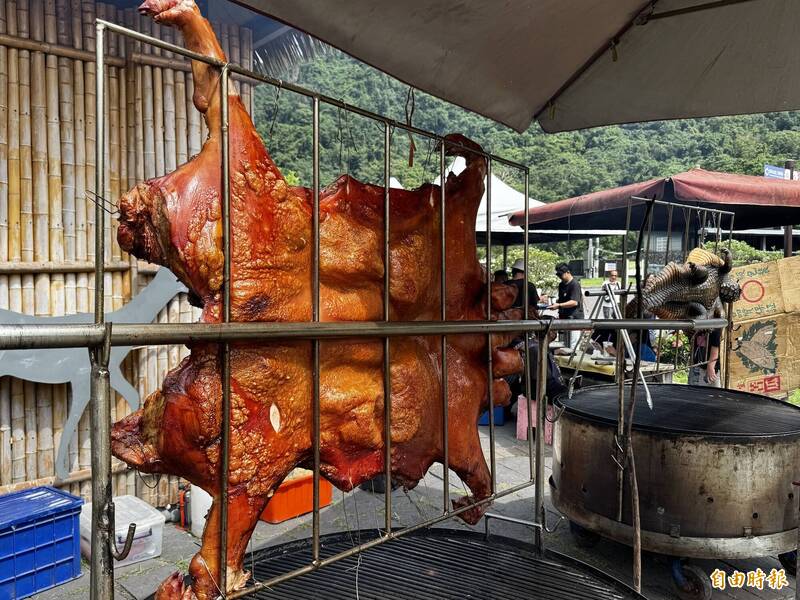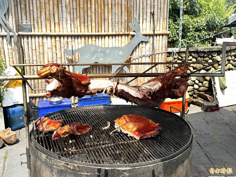 烤山豬令人食指大動。(記者蔡宗勳攝)