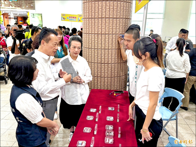 嘉義縣長翁章梁(左二)了解女性微型職訓果成果。(記者蔡宗勳攝)