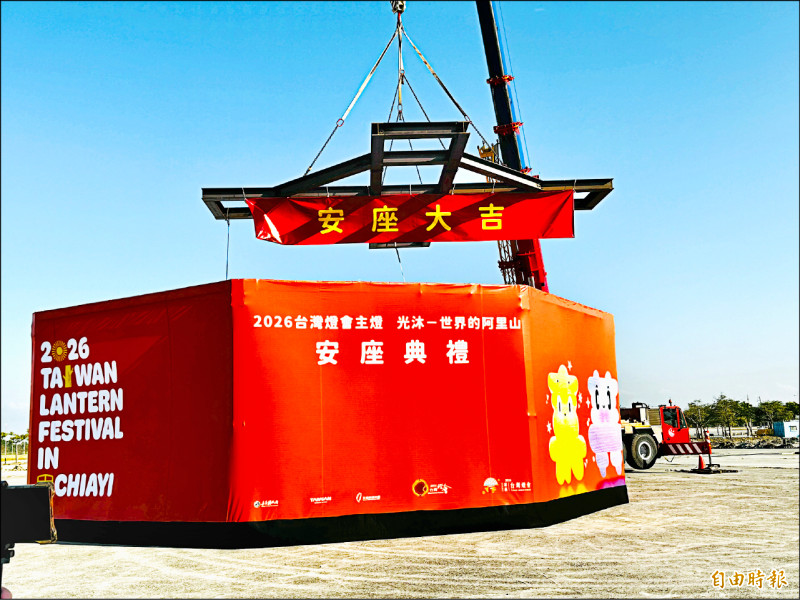 「二〇二六台灣燈會」將於明年三月三日至十五日在嘉義縣登場,主燈「光沐—世界的阿里山」昨天舉行安座典禮,由交通部觀光署長陳玉秀與嘉義縣長翁章梁等人共同主持。