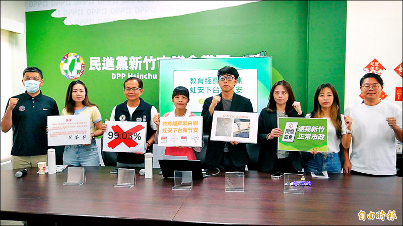 藍白刪預算影響地方教育補助,新竹市議會民進黨團批高虹安市府卸責中央,更批即使中央給補助,市府也執行不力。(記者洪美秀攝)