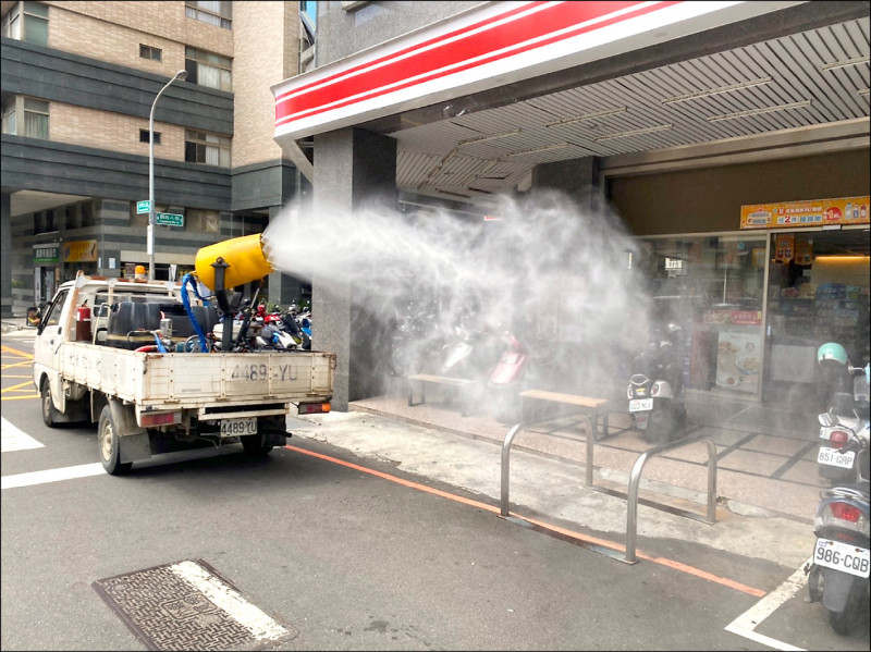 新竹縣府防疫,清消高風險場所。 (竹縣府提供)