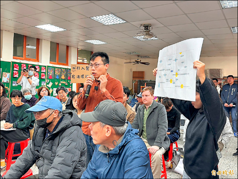 東茂智慧產業園區開發案說明會,環保人士和鄉親對於開發商的水資源管理與污染提出疑慮,並強調應保護石虎,維護農地。(記者廖雪茹攝)