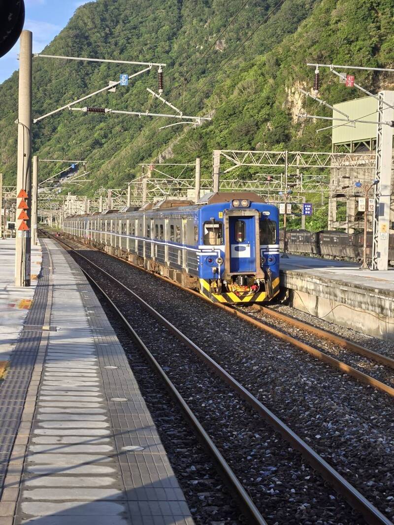 台鐵北迴線和仁至崇德間鐵路受到強降雨影響日前中斷,今天凌晨搶通東正線,首班車4117次區間車於花蓮崇德站5點43分開車。 (台鐵提供)